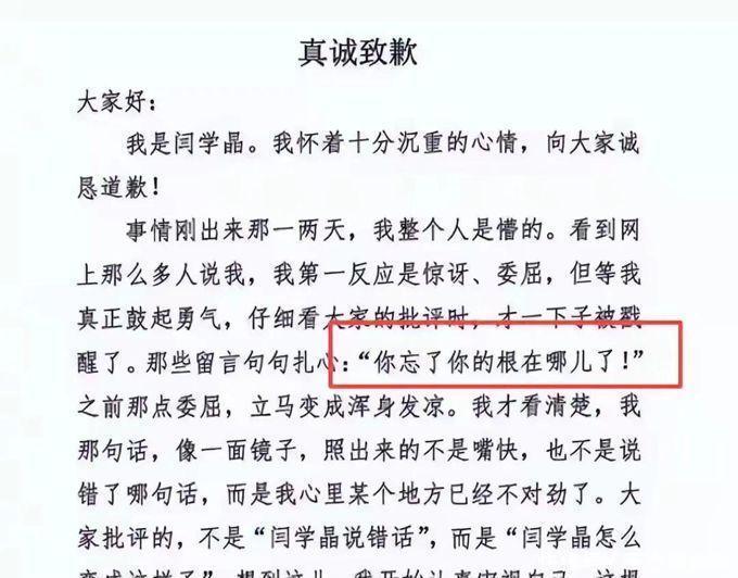 闫学晶竭诚地默示歉意,但她来得太迟了。