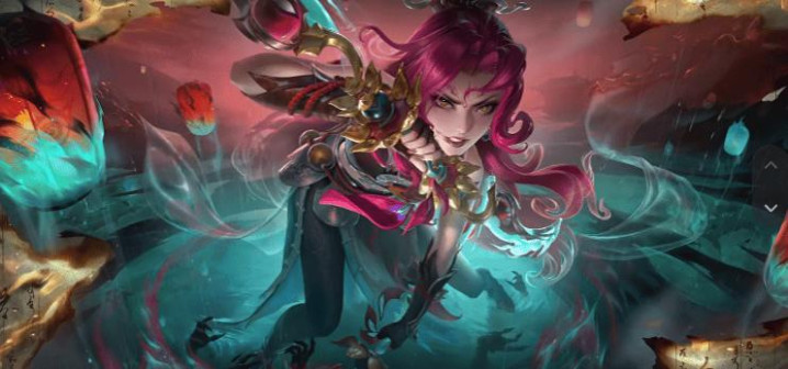 这款皮肤建模霸气玫红色搭配玄色举座的作风偏向奇幻,阿轲看上去也很璀璨,一头红发满腔原宥,发尾更是作念了渐变的措置,而她的驾御还有一个高大的金珠吊挂,局内的殊效更是以青红色为主。